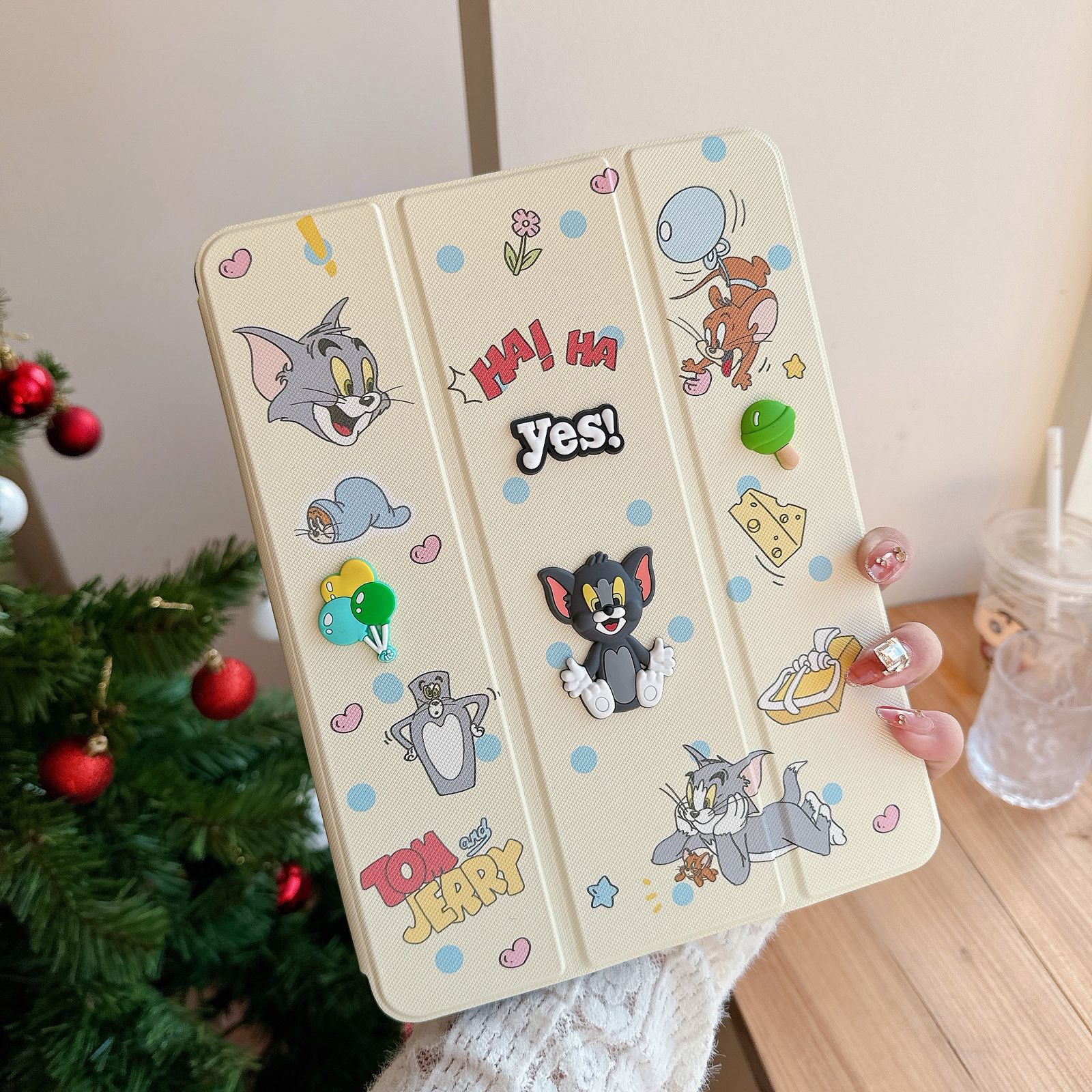 Tom Designer 3D Embossed Cartoon Flip Ipad Case With Pen Holder