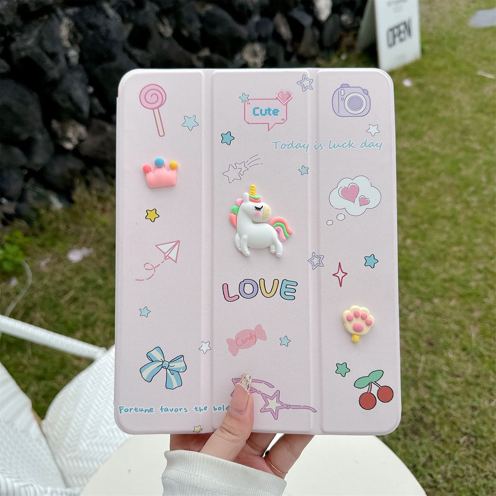 Unicorn Designer 3D Embossed Cartoon Flip Ipad Case With Pen Holder