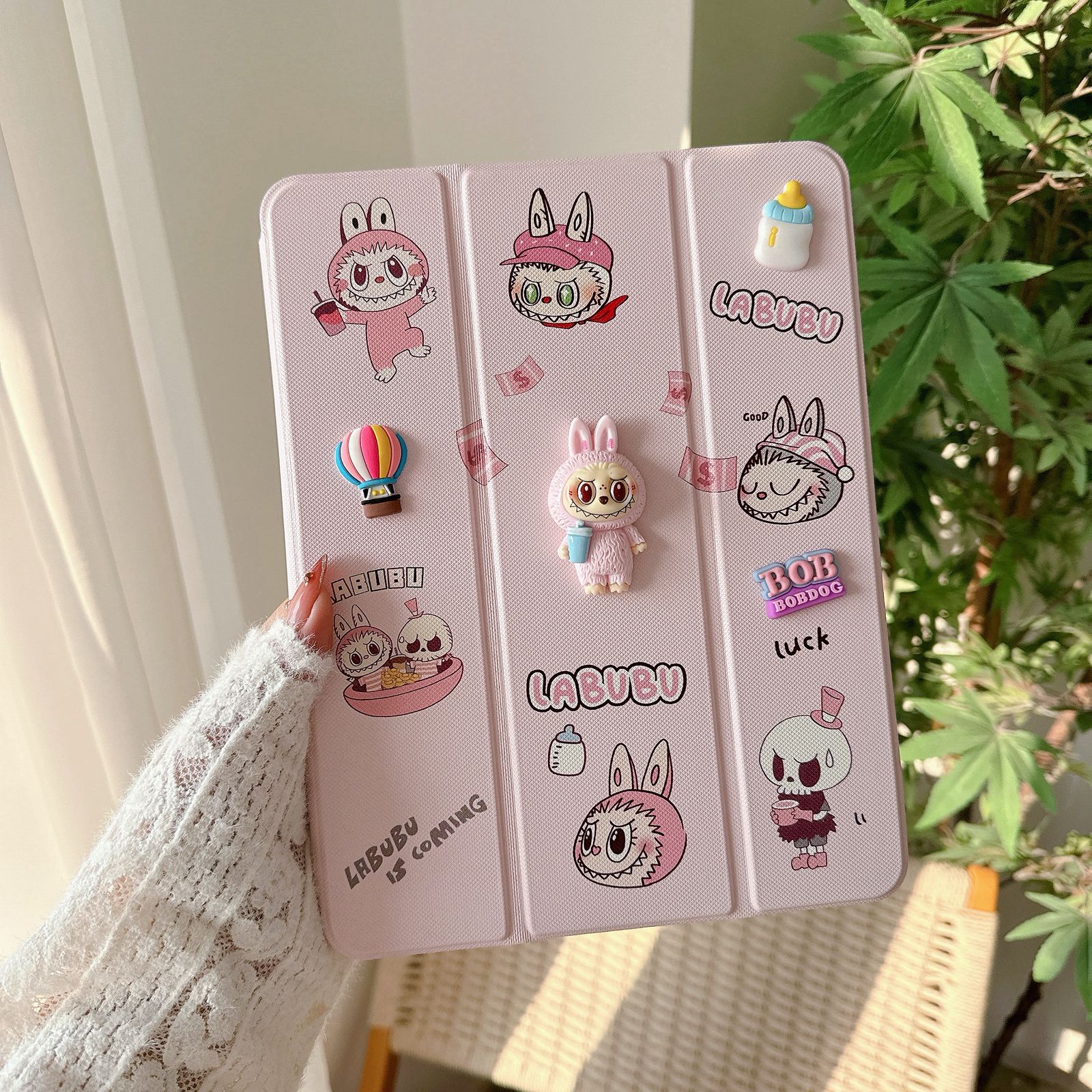 Labubu Designer 3D Embossed Cartoon Flip Ipad Case With Pen Holder