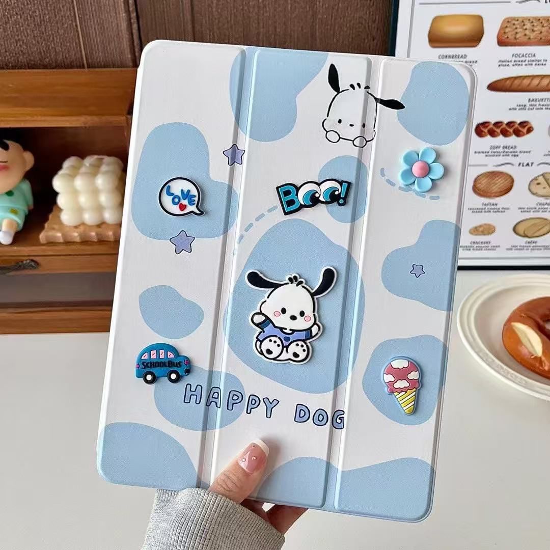Happy Dog Designer 3D Embossed Cartoon Flip Ipad Case With Pen Holder