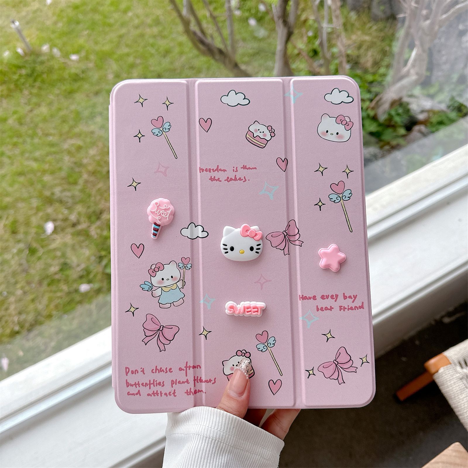Kitty Designer 3D Embossed Cartoon Flip Ipad Case With Pen Holder