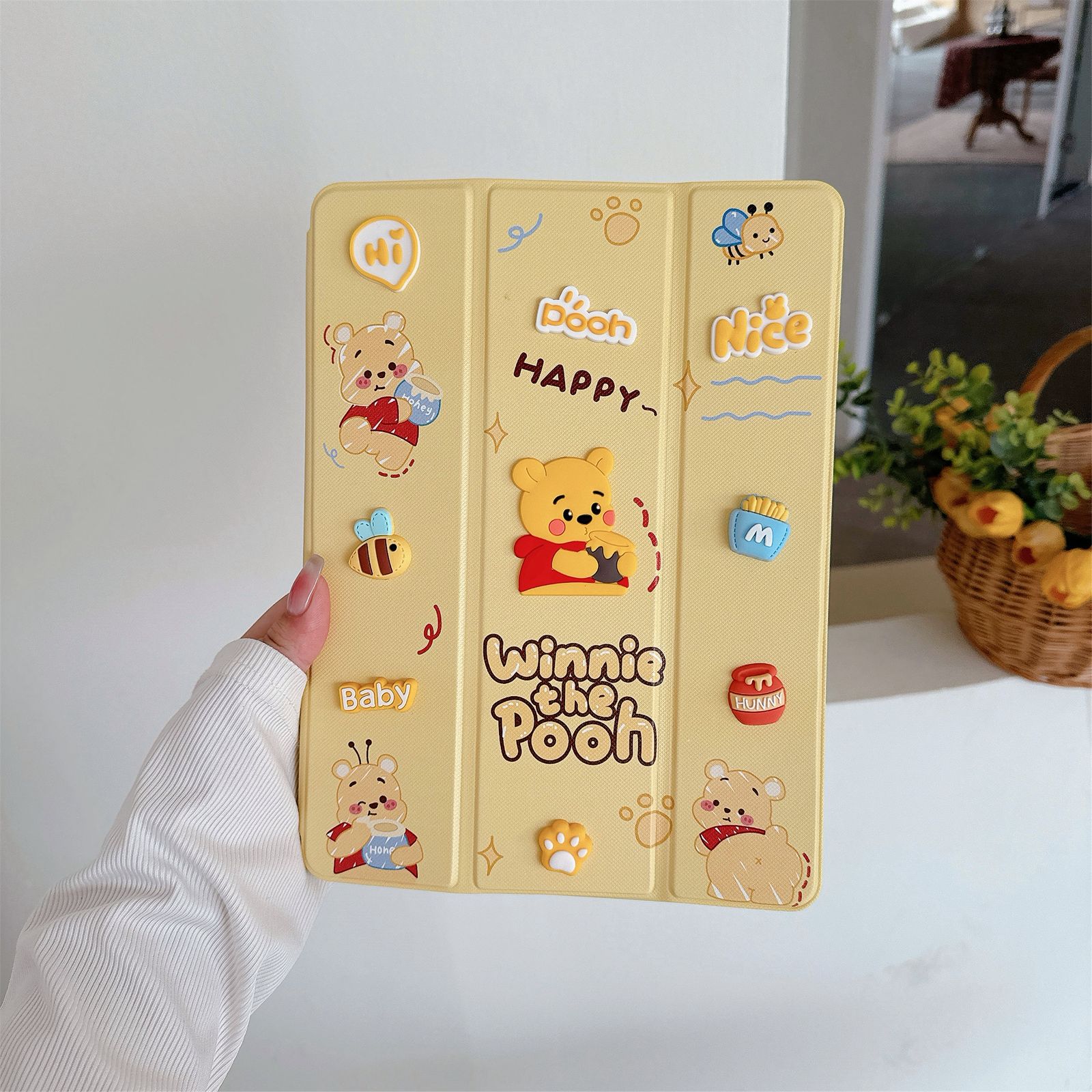 Winnie Pooh Designer 3D Embossed Cartoon Flip Ipad Case With Pen Holder