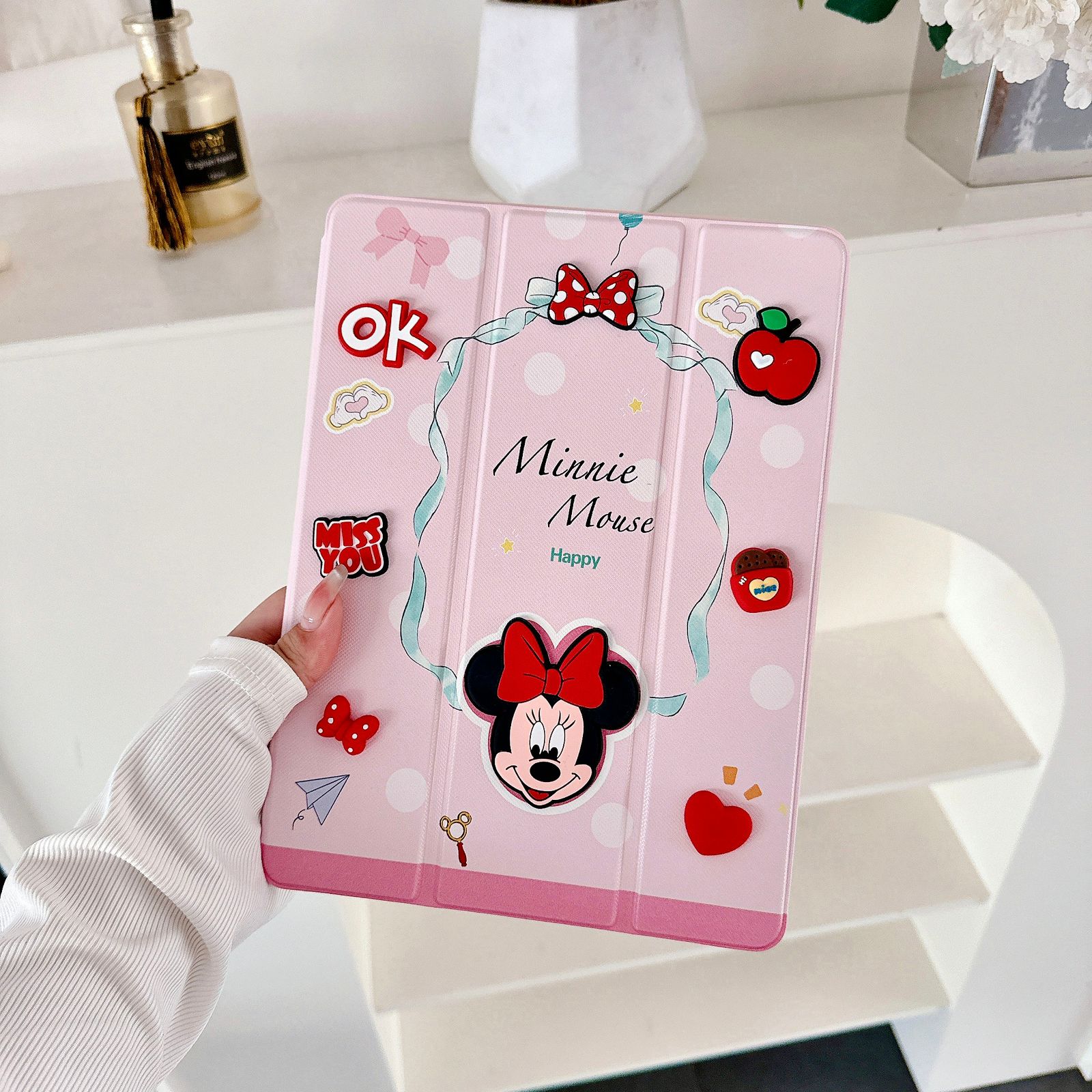 Minnie Mouse Designer 3D Embossed Cartoon Flip Ipad Case With Pen Holder