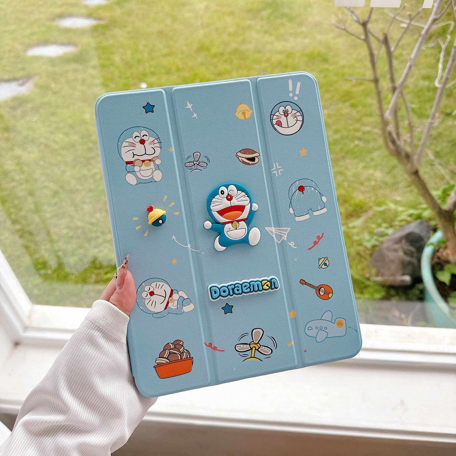 Doraemon Designer 3D Embossed Cartoon Flip Ipad Case With Pen Holder