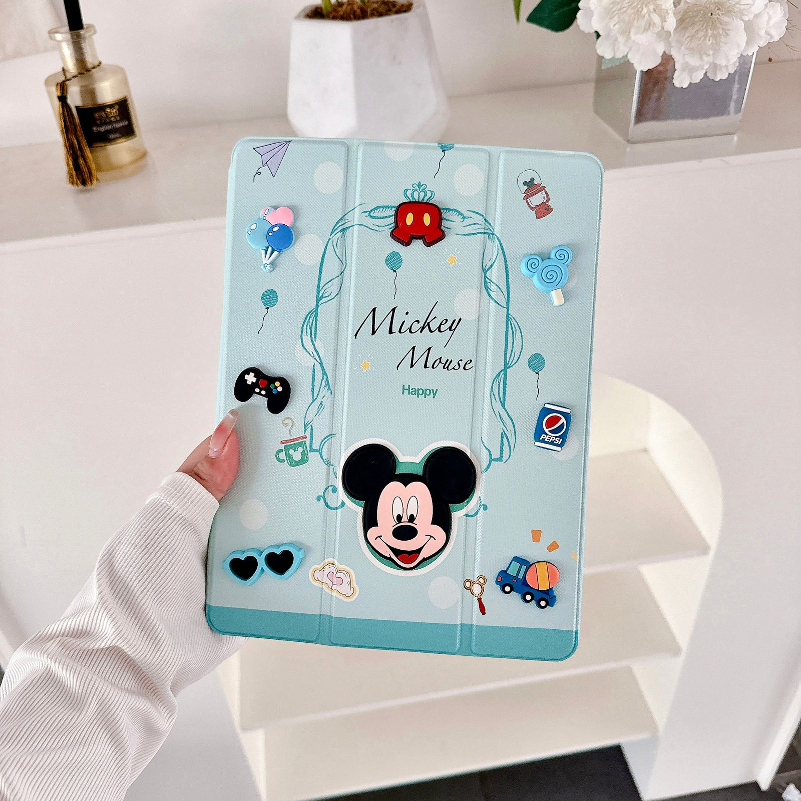 Mickey Mouse Designer 3D Embossed Cartoon Flip Ipad Case With Pen Holder