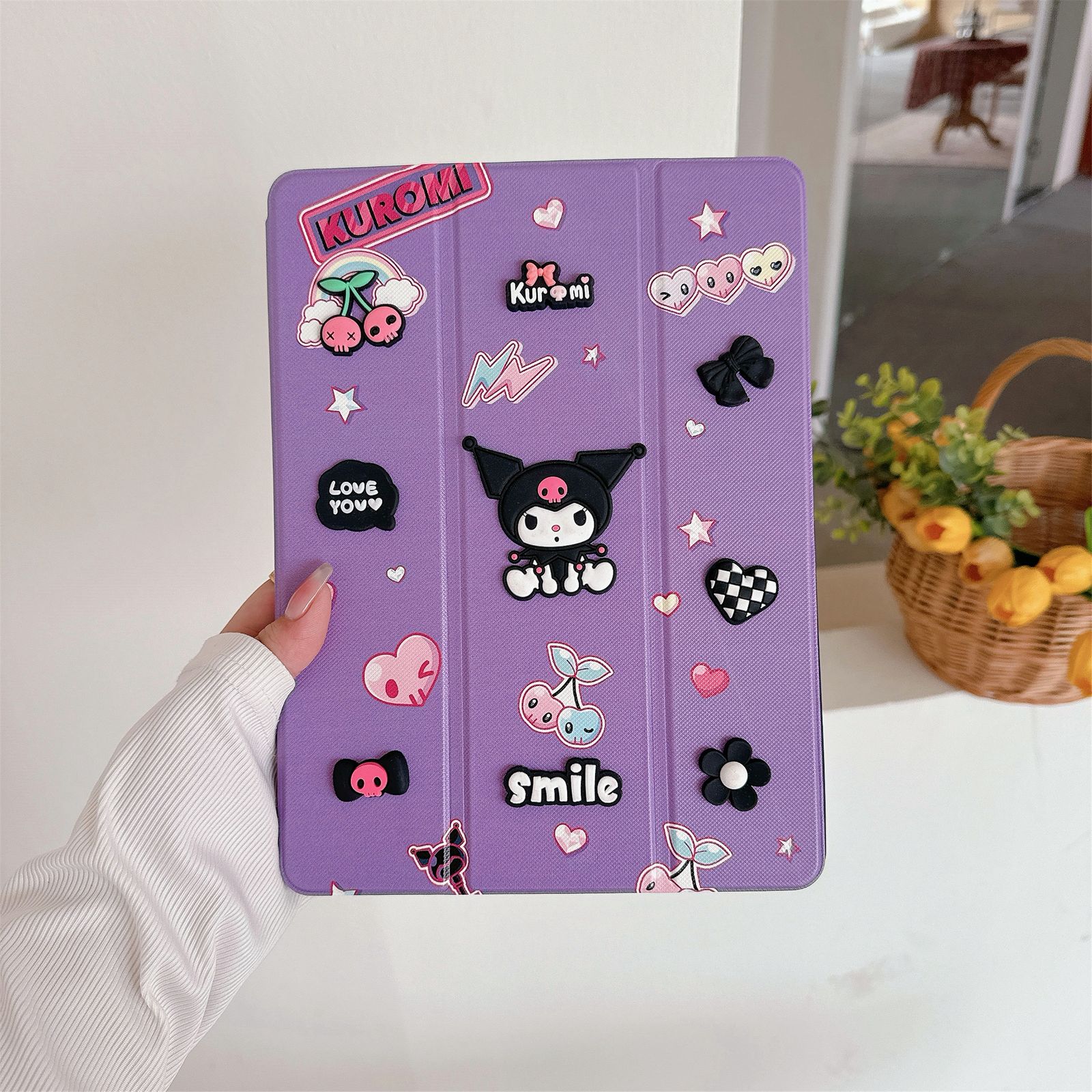 Kuromi Designer 3D Embossed Cartoon Flip Ipad Case With Pen Holder