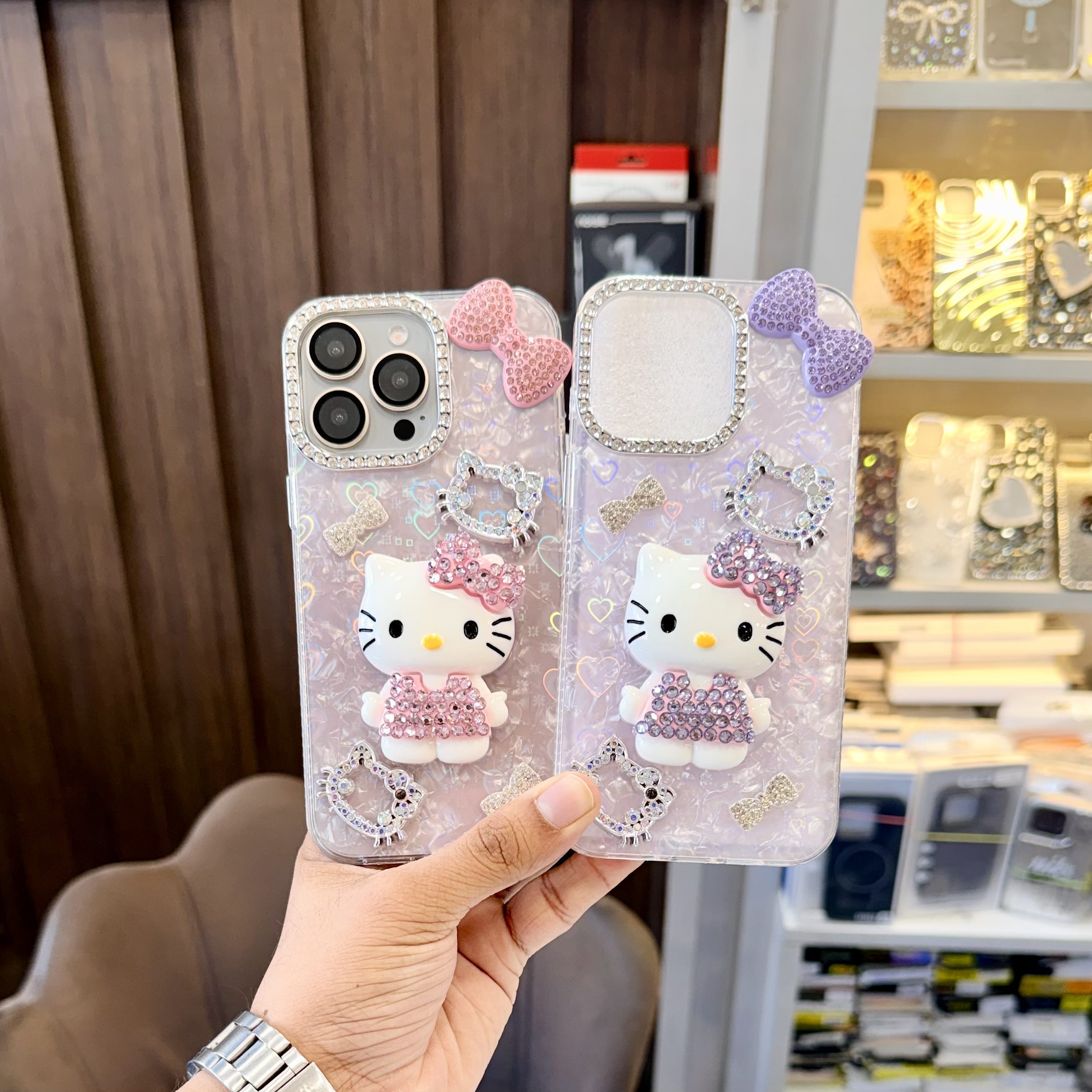 Kitty Stone Case With Heart Style Holographic Effect In Silicon Material – iPhone 13 Pro