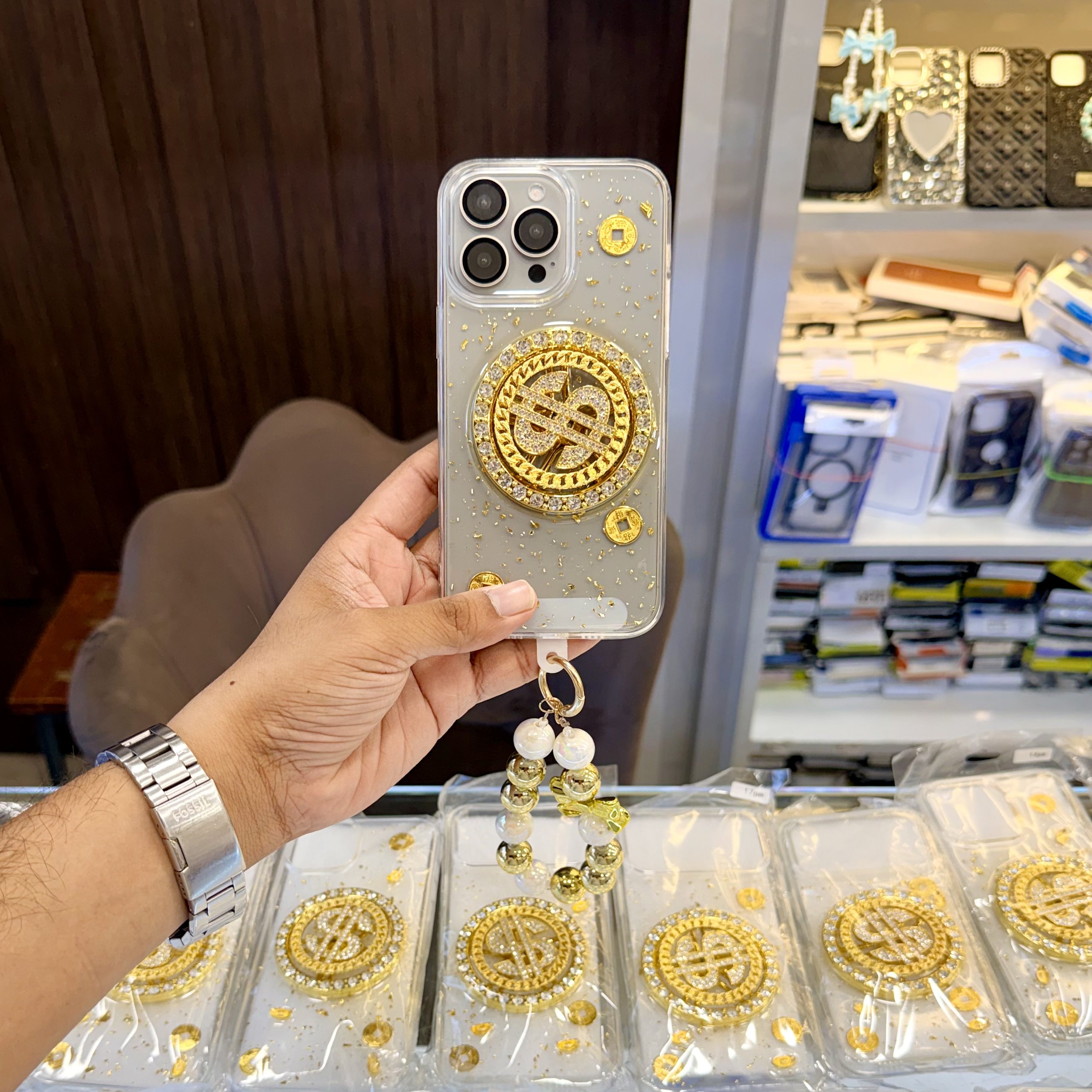 Dollar Spinner Case With Charm – iPhone 15 Plus