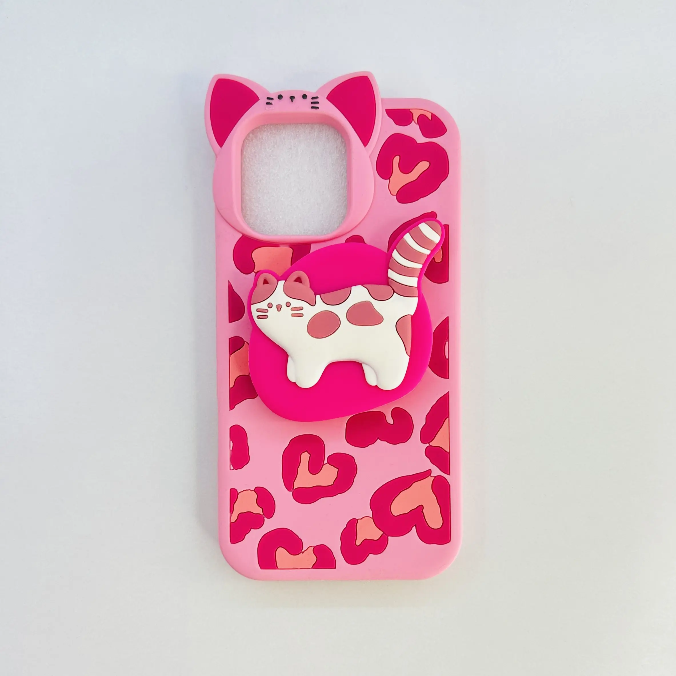 Kitty Cartoon Case With PopSocket Pink – iPhone 15 Promax