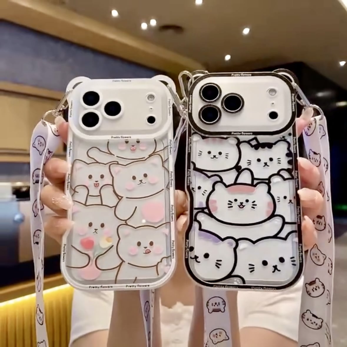 Cute Kitty Case With Sling In Transparent Look – iPhone 17 Air