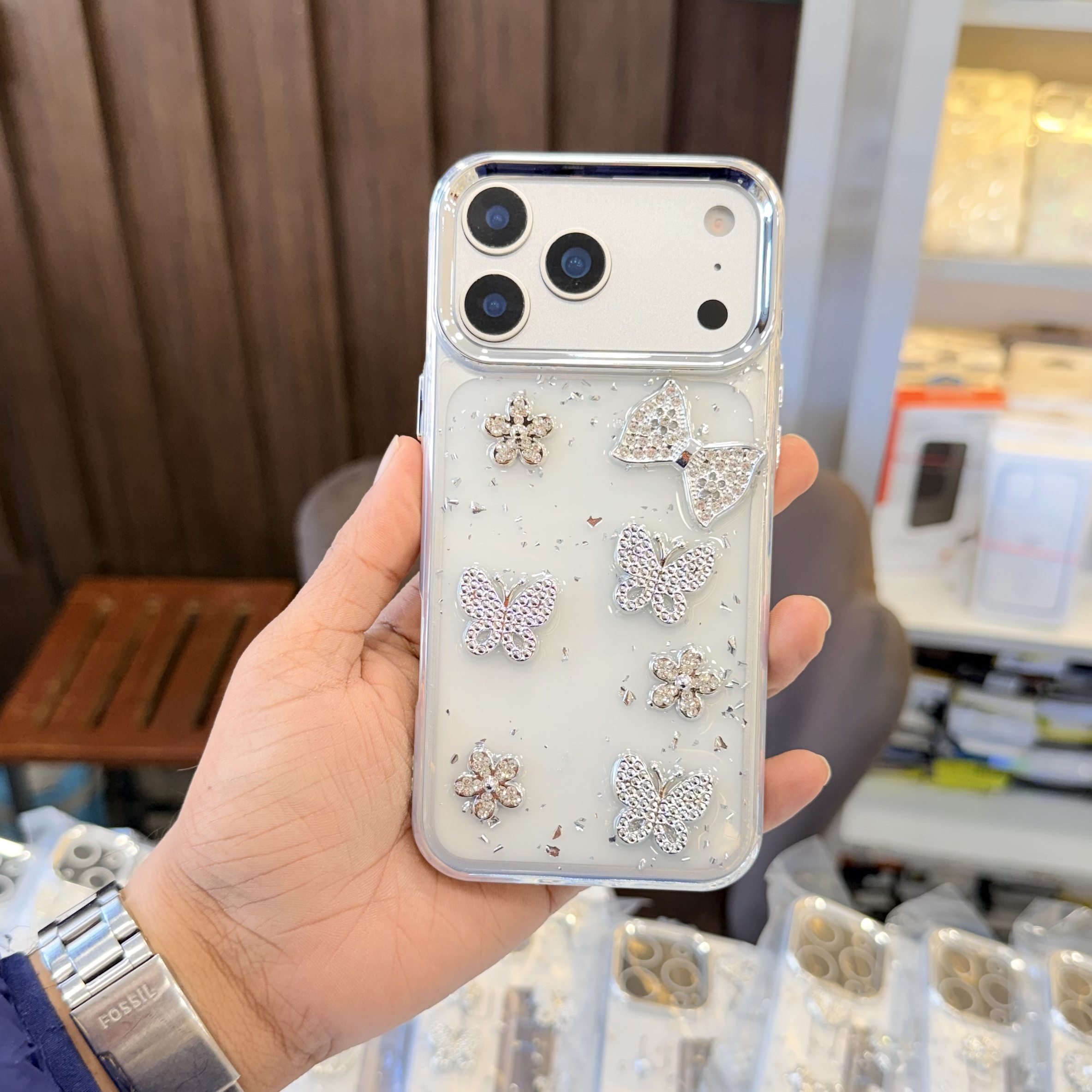 Bow & Butterfly Transparent Stone Case In Silicon Material – iPhone 17 Pro