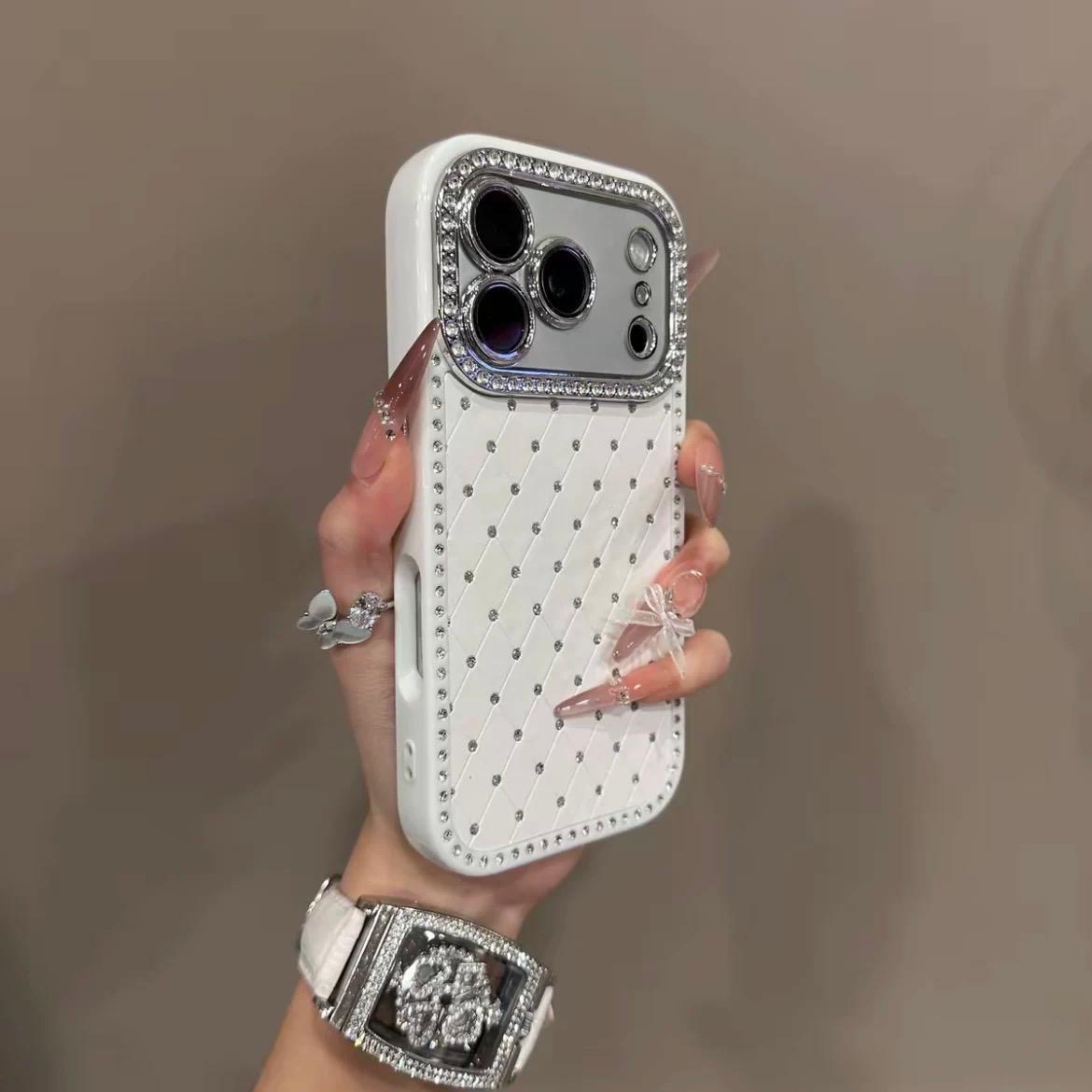 Diamond Studded Case With Camera Lens Protection (White) – iPhone 17 Pro