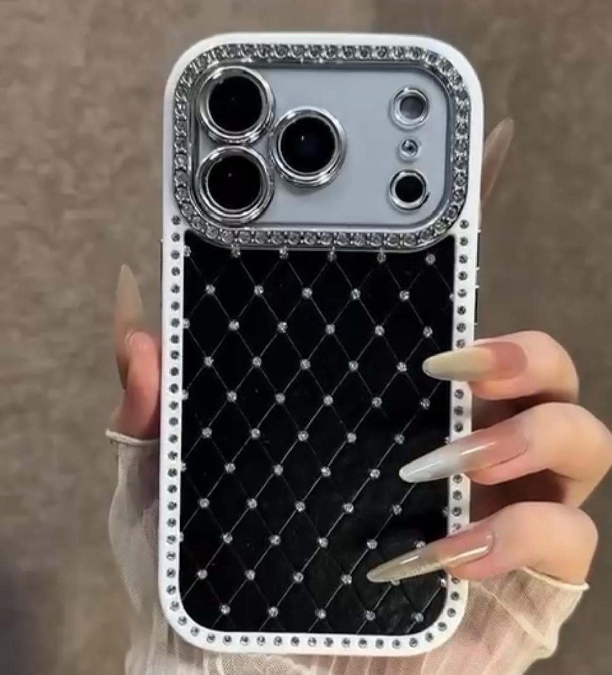 Diamond Studded Case With Camera Lens Protection (Black) – iPhone 17 Pro