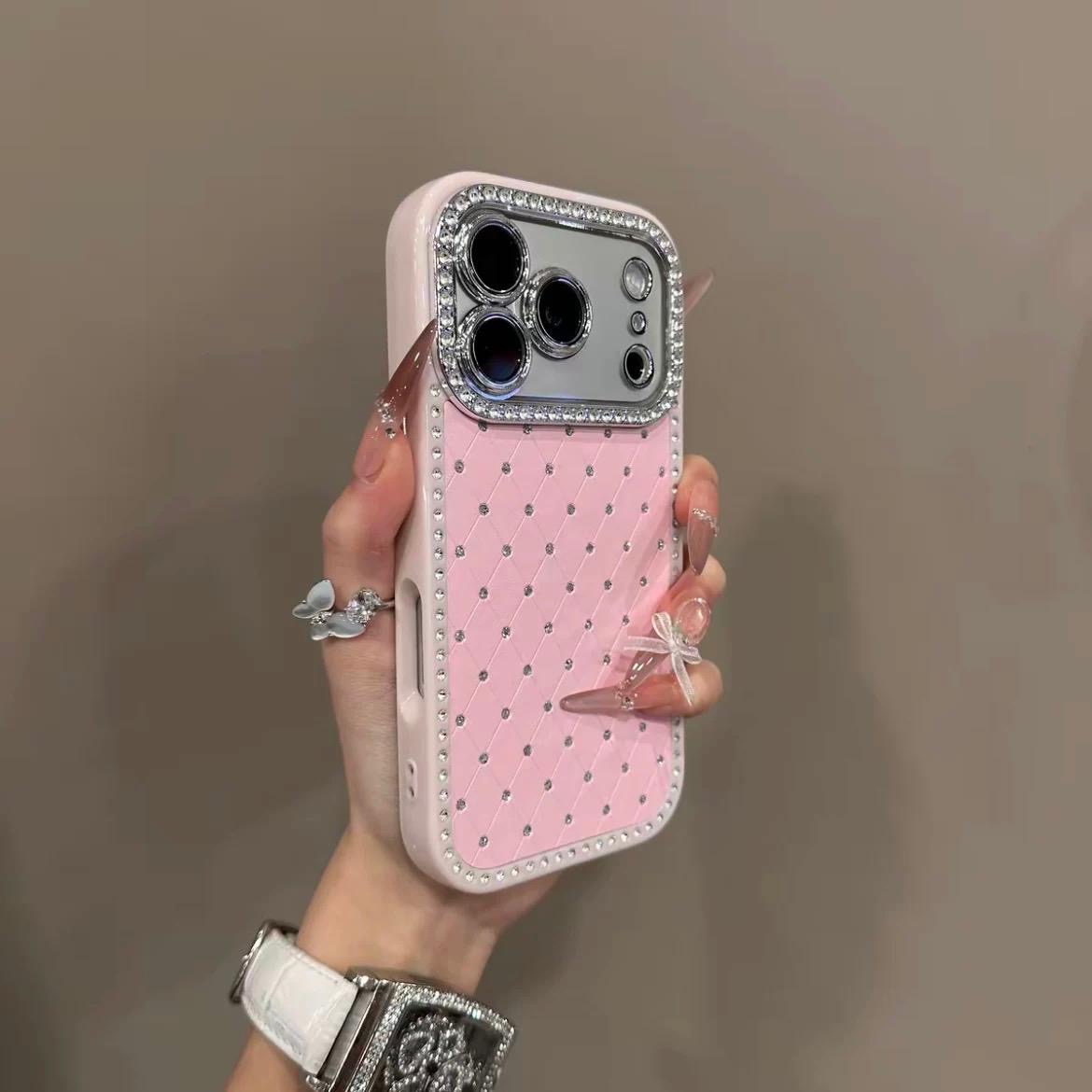 Diamond Studded Case With Camera Lens Protection (Pink) – iPhone 17 Pro