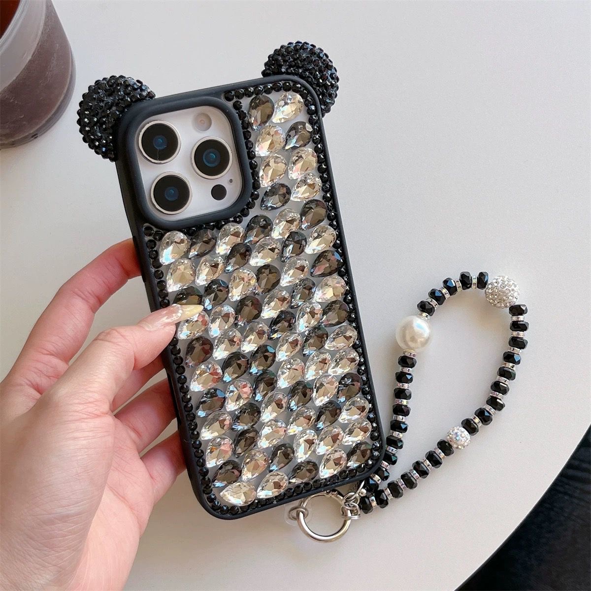 Cute 3D Ears Diamond Case With Charm In Silicon Material (Black) – iPhone 17 Pro