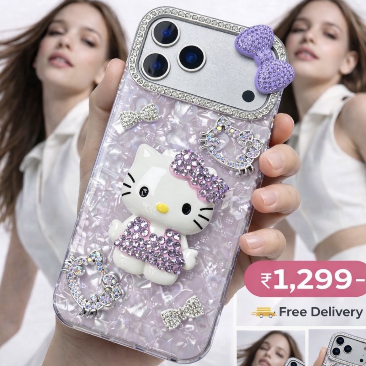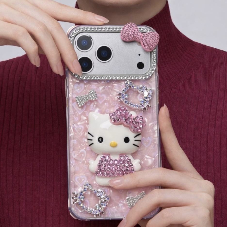 Kitty Stone Case With Heart Style Holographic Effect In Silicon Material (Pink) – iPhone 17 Pro