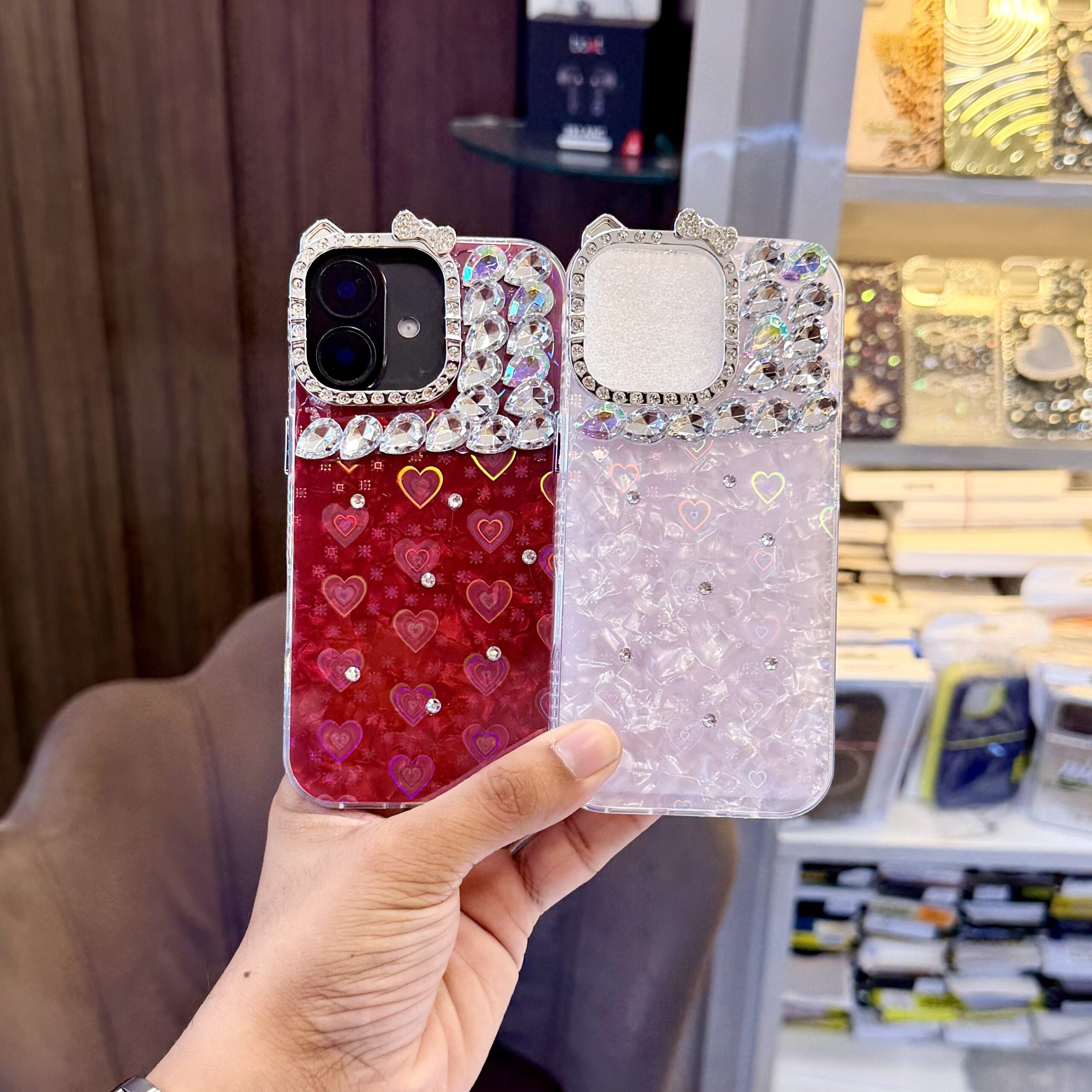 Stone Case With Heart Style Holographic Effect In Silicon Material – iPhone 17