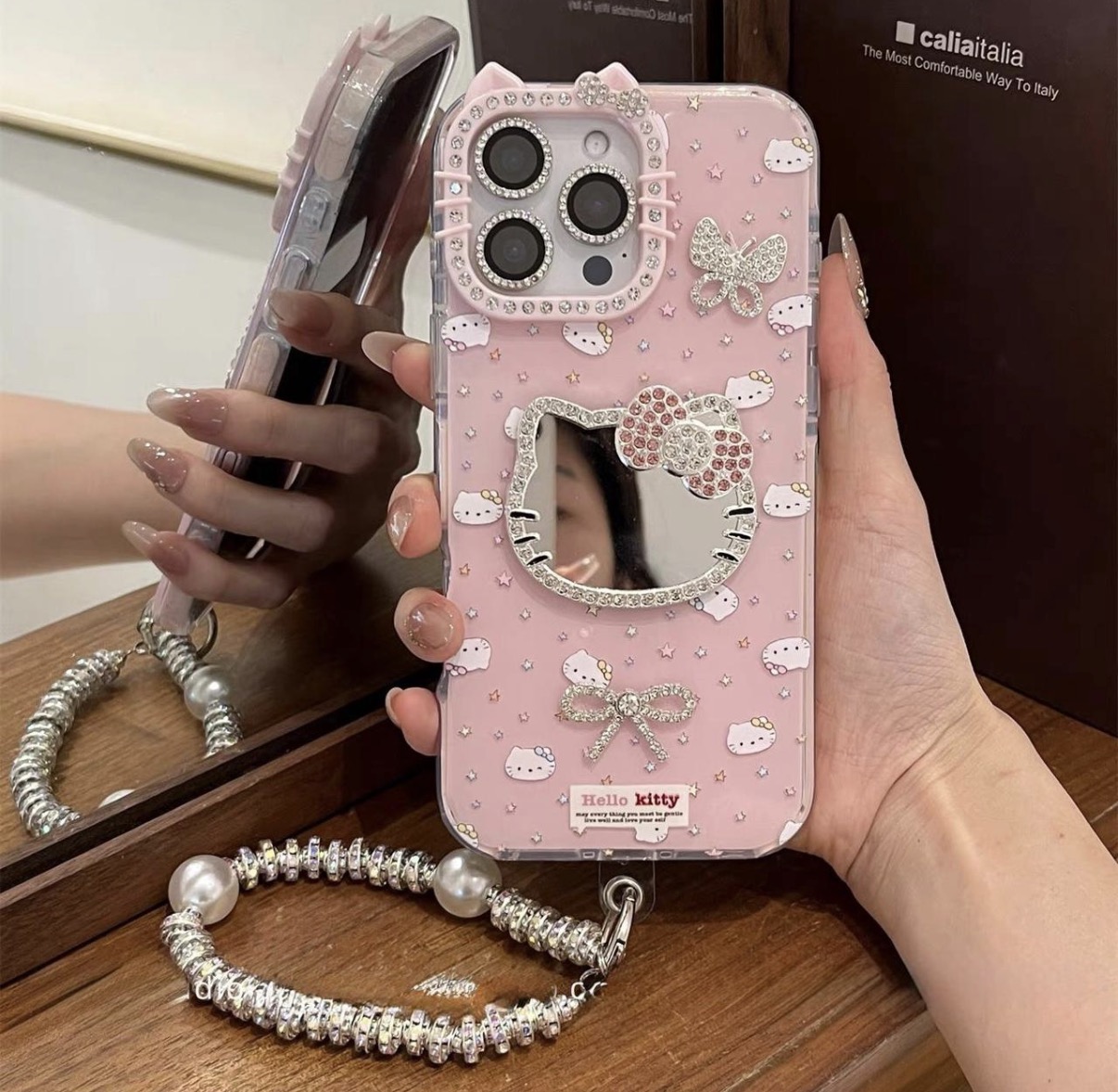 Hello Kitty Mirror Case with Charm In Silicon Material – iPhone 17 Pro
