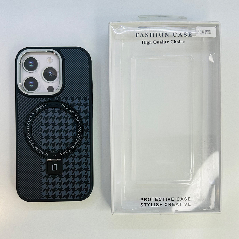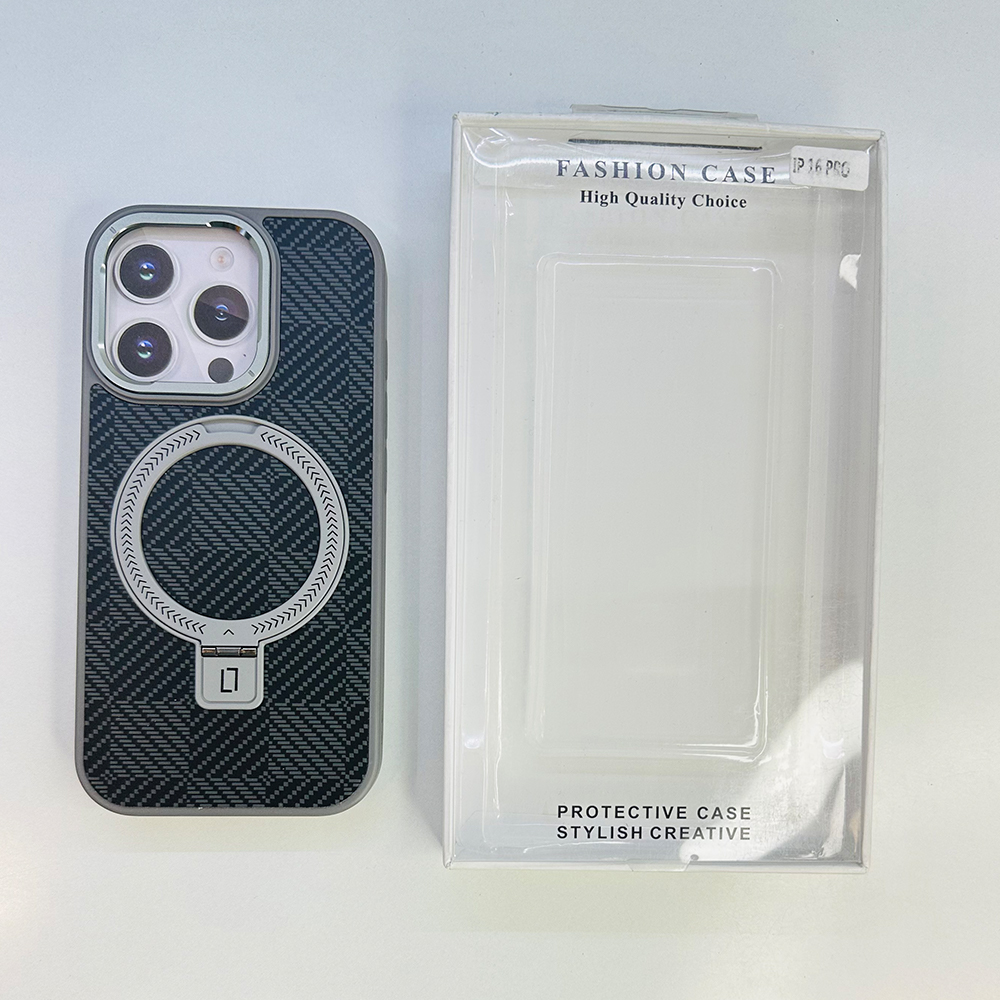 Kuvete Carbon Texture Case With Stand – iPhone 16 Pro